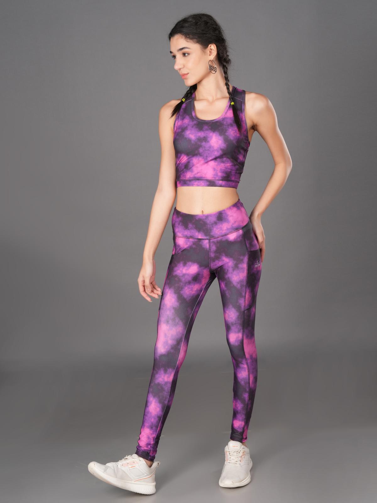 Stylish Printed Co-ord Activewear Leggings and Padded Sports Top Set - Valentina
