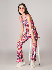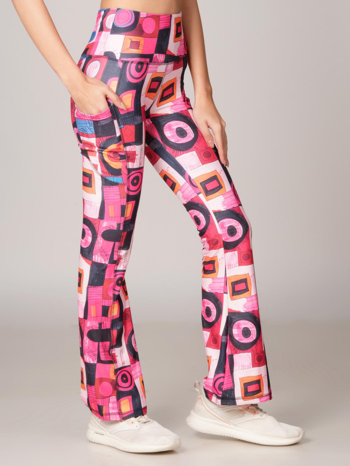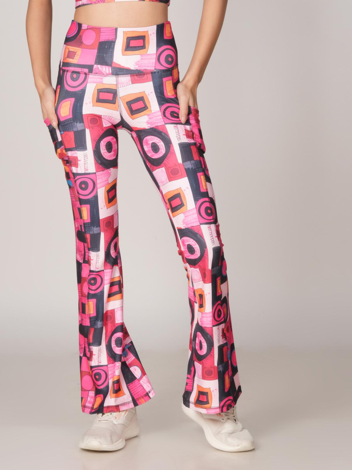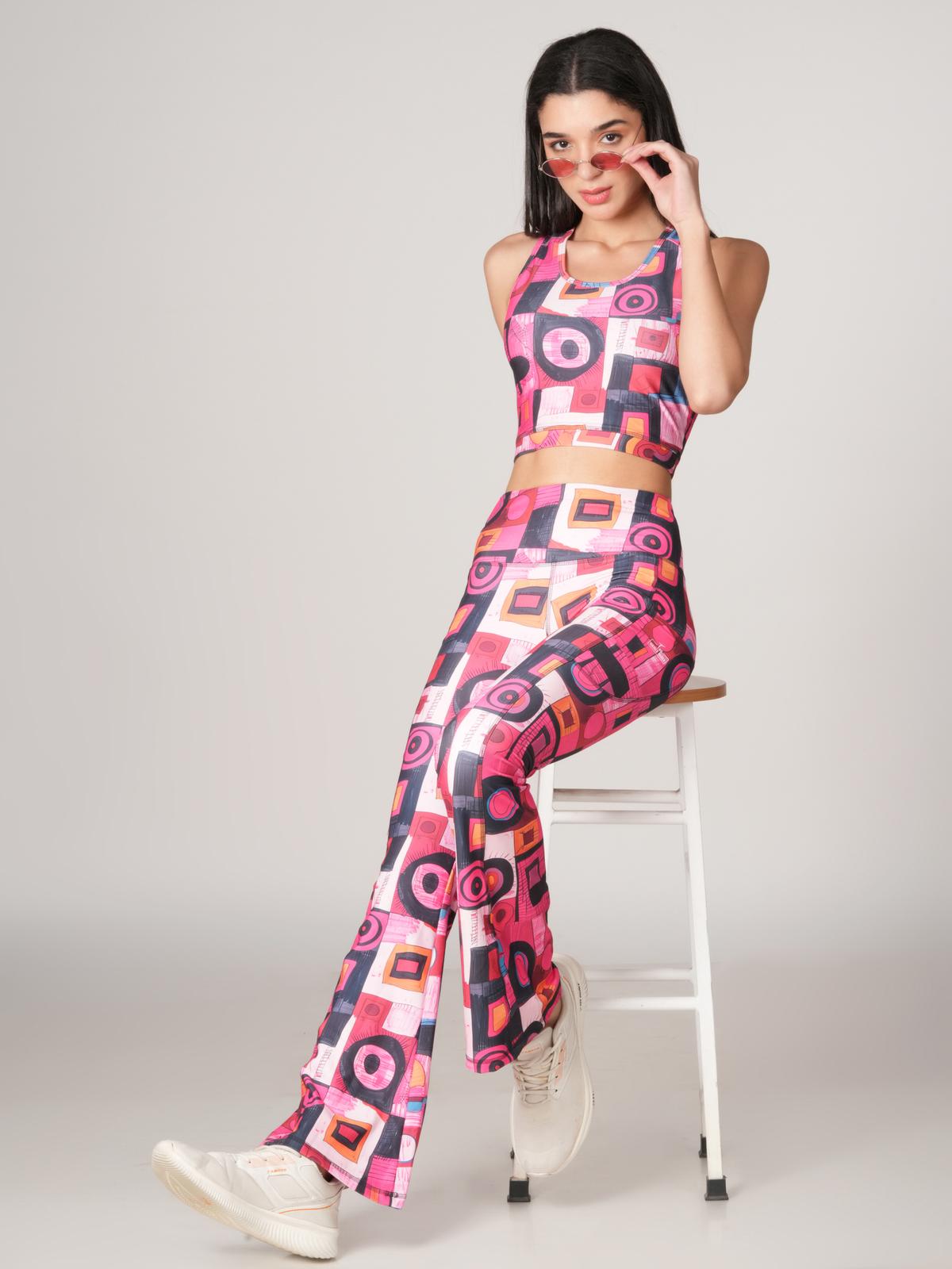 Women Flared Printed Yoga Pants and Matching Sports Top Co-ord Set - Jasmine