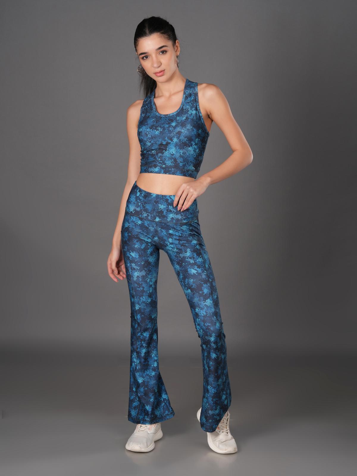 Women Flared Printed Yoga Pants and Matching Sports Top Co-ord Set - Katherine