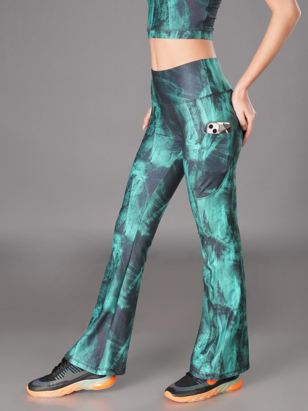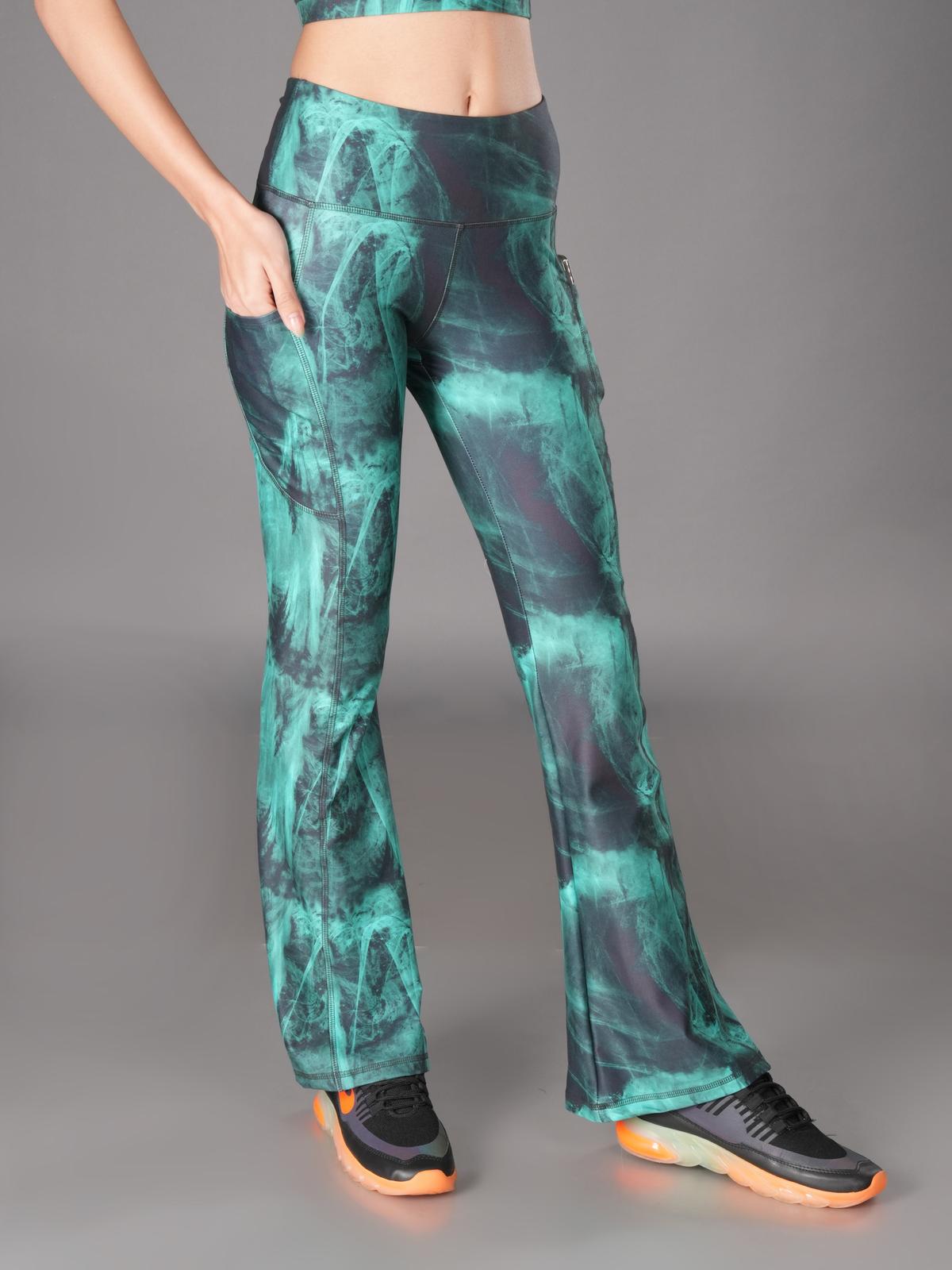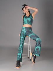 Women Flared Printed Yoga Pants and Matching Sports Top Co-ord Set - Melody
