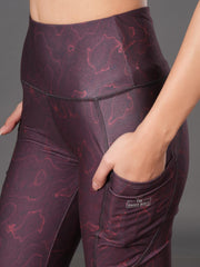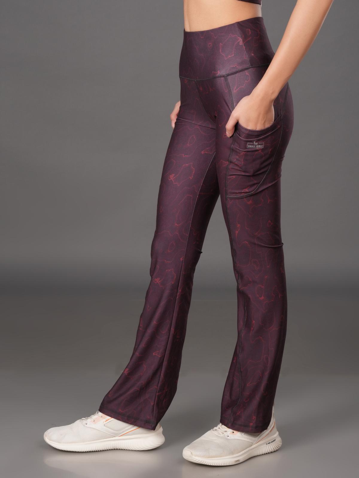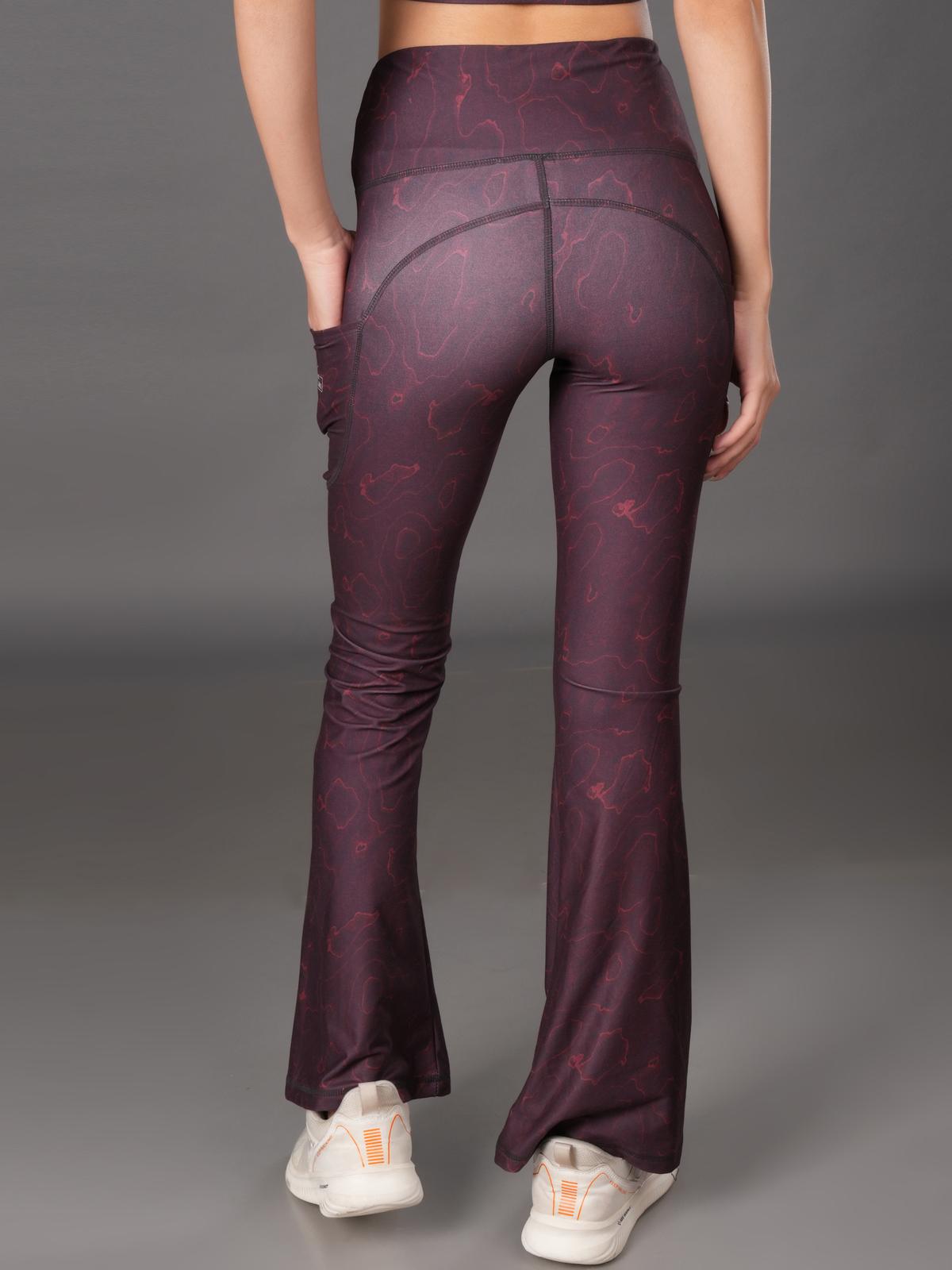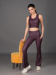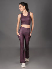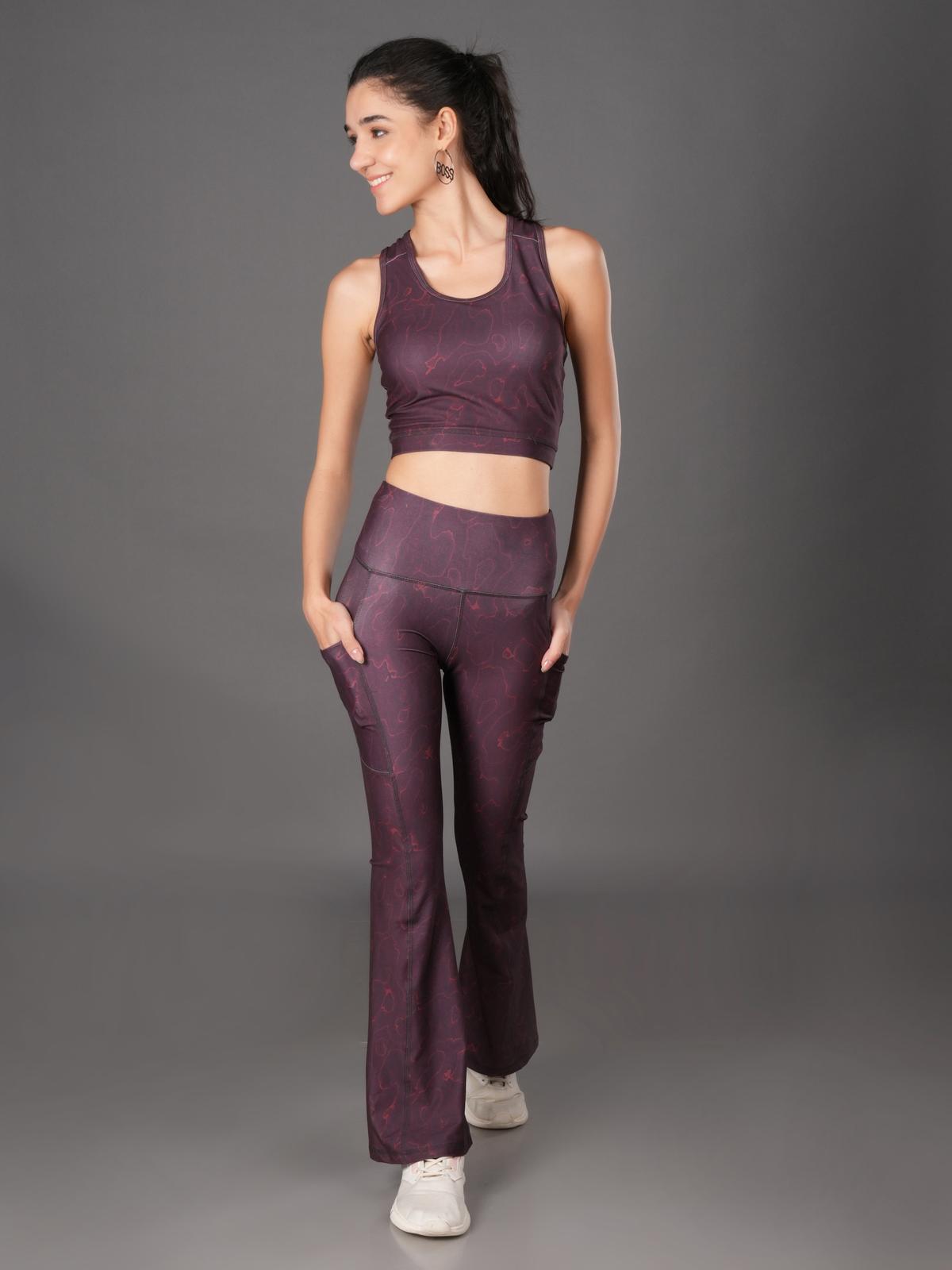 Women Flared Printed Yoga Pants and Matching Sports Top Co-ord Set - Ruby