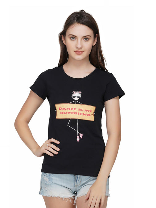 Dance is my Boyfriend Women Black Round Neck T-Shirt