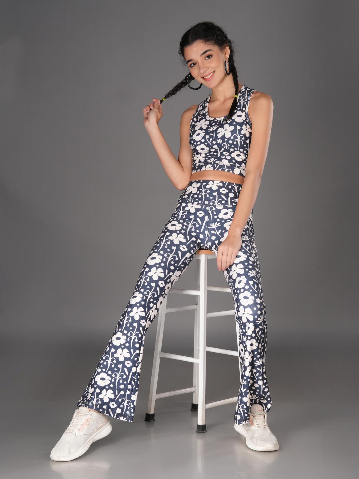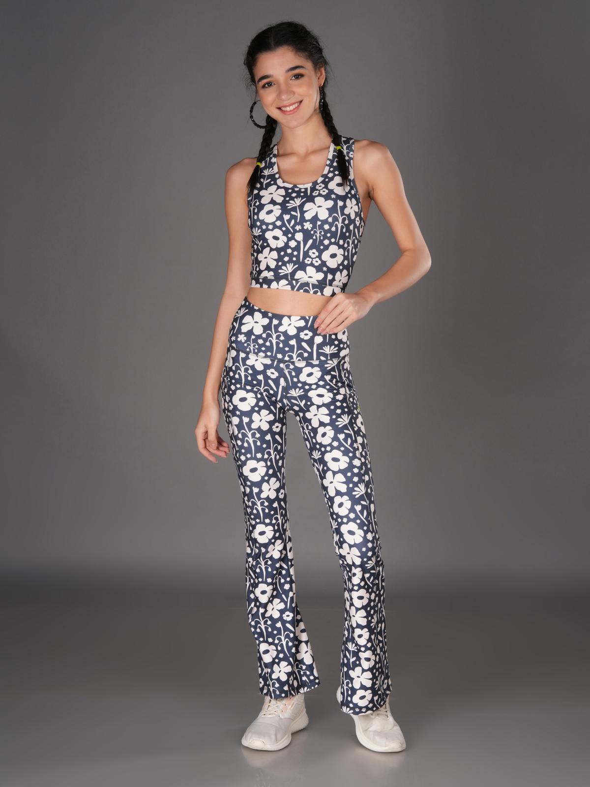 Match Your Style: Express yourself with a variety of eye-catching printed co-ord sets. Flaunt your individuality with vibrant flare yoga pants and a matching sports crop top.